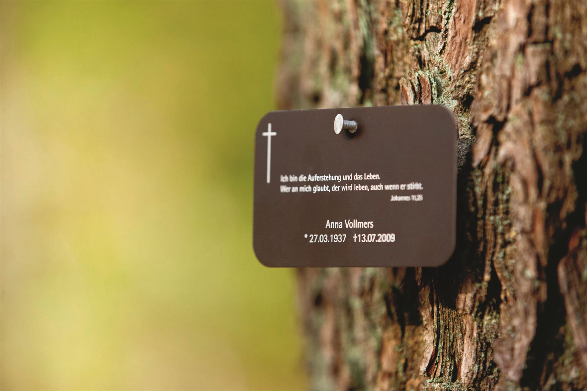 FriedWald bietet unterschiedliche Baumgräber für verschiedene Bedürfnisse an: für Familien oder Freundeskreise, für Partner, aber auch alleinstehende Menschen. Freie Bäume sind mit farbigen Bändern gekennzeichnet, die Auskunft über die Baumgrabarten geben. Mit kleinen Namenstafeln werden diese imFriedWald zu persönlichen Orten der Erinnerung.